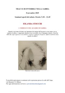 La relatrice sarà la dott.ssa Jolanda Stocchi con un intervento dal titolo L’OMBELICO DEL QUADRO DI SABBIA.
